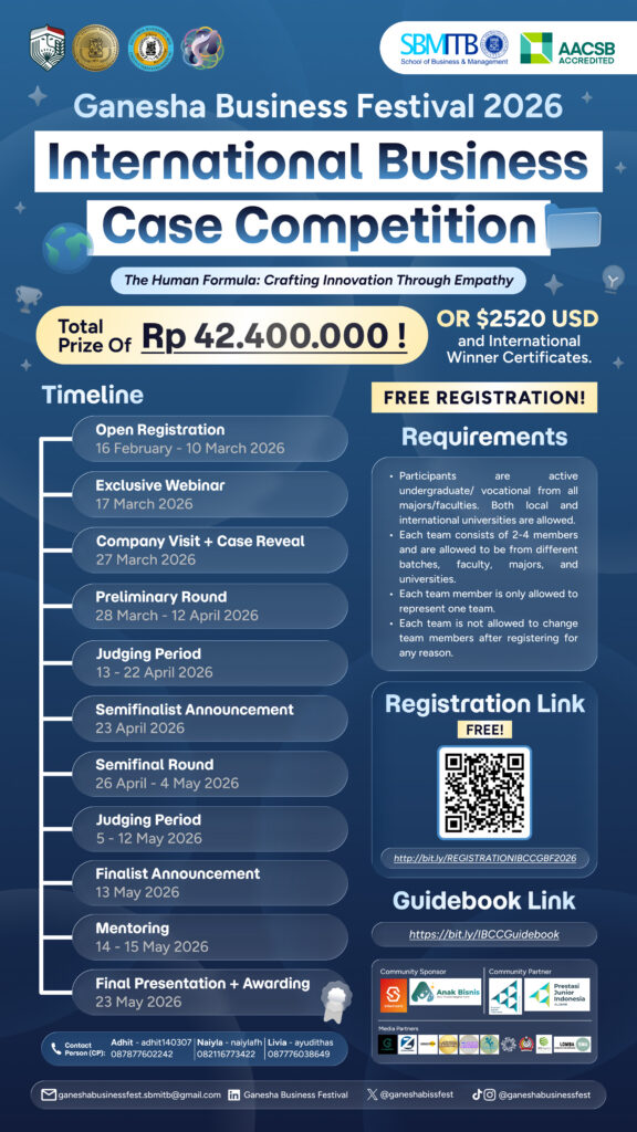 The International Business Case Competition (IBCC) is a flagship global competition under Ganesha Business Festival 2026 that brings together university students from around the world to tackle real-world business challenges in collaboration with leading corporate and institutional partners.